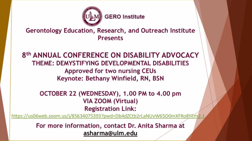 The University of Louisiana Monroe’s (ULM) Gerontology Education Research Outreach (GERO) Institute will hold its 8